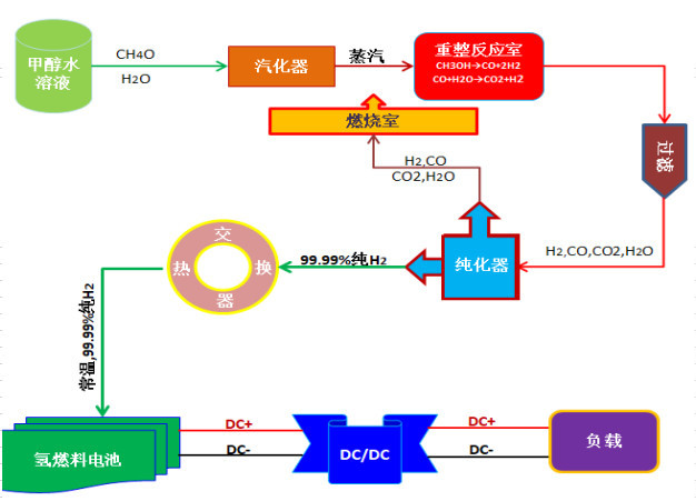 CW-MFC5000 is a 5KW methanol water hydrogen fuel cell generator with a power capacity。Using the methanol reforming hydrogen production technology and the fuel cell power generation technology integration, the full close