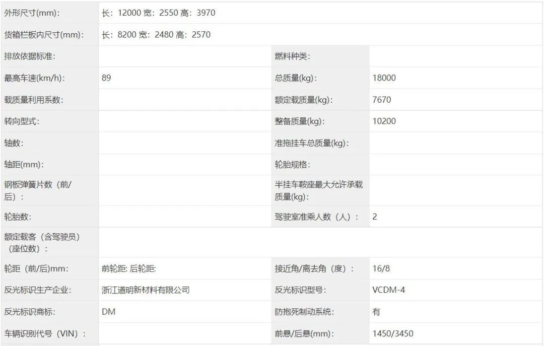 The remote new methanol reforming hydrogen loading truck is based on the chassis, product model DNC5188XXYFCEVGMP1, overall size 1200025503970mm, the container plate size 820024802570mm. Total mass 18000kg, rated load mass 7670kg and preparation mass 10200kg.